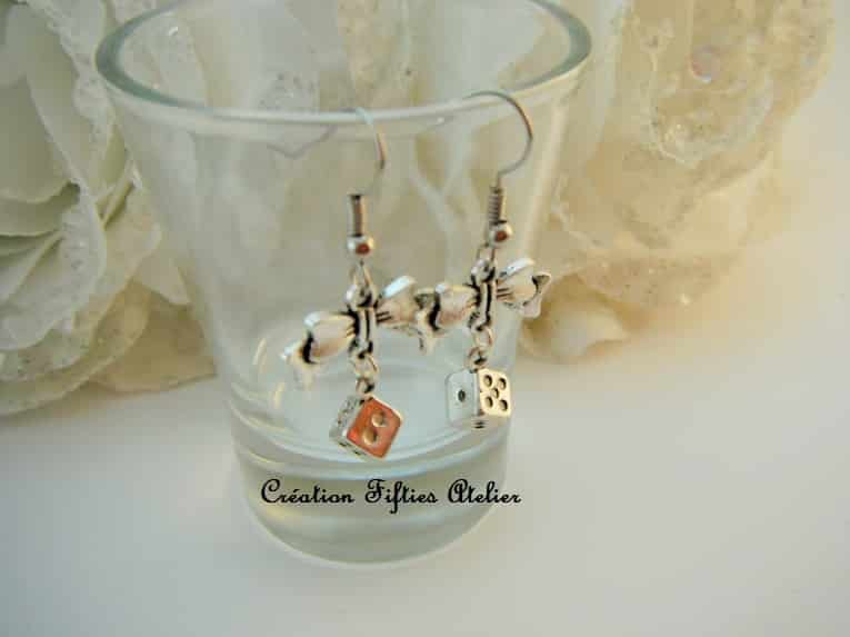 Boucles d’Oreilles pendantes Dés et Noeuds