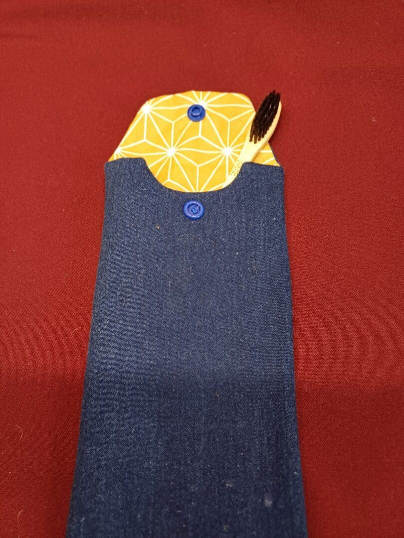 Ces étuis à brosse à dents artisanaux sont fabriqués à partir de tissu en jean recyclé et de chutes de tissu enduit pour l'imperméabilité de votre accessoire. Ce sont des accessoires à la fois pratiques et écoresponsables, conçu pour répondre aux besoins de ceux qui souhaitent allier style et durabilité. Ce choix de matériaux contribue non seulement à réduire le gaspillage textile, mais aussi à donner une seconde vie à des tissus qui auraient autrement été jetés.